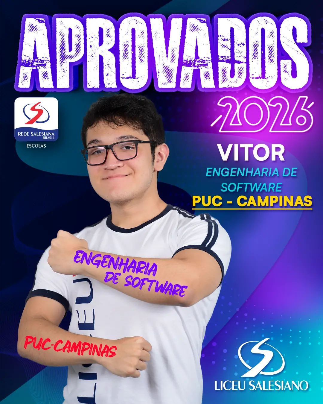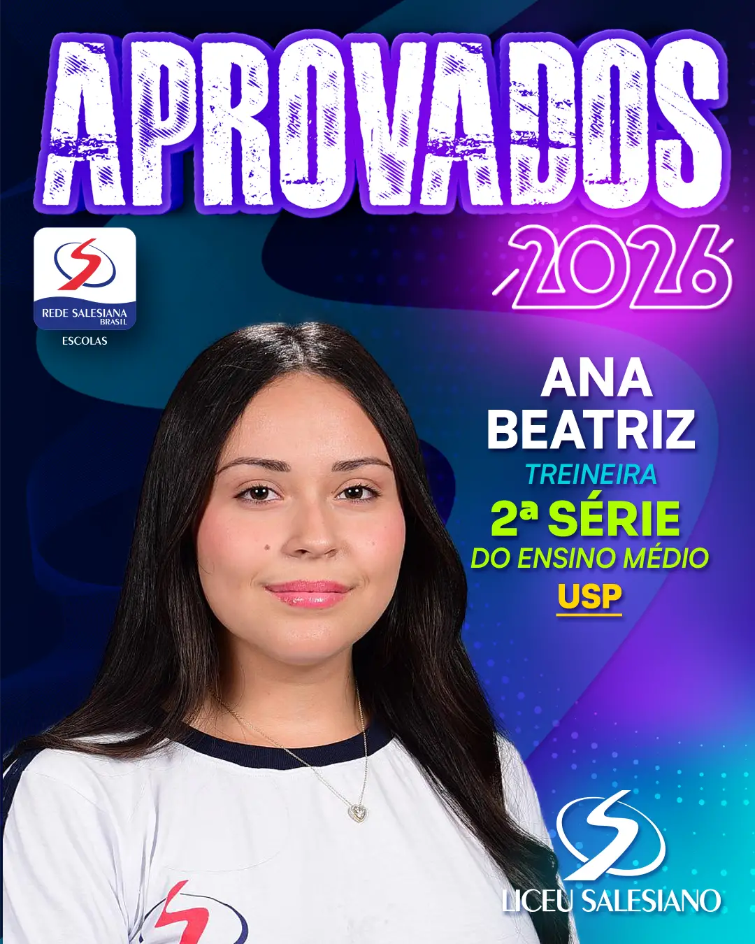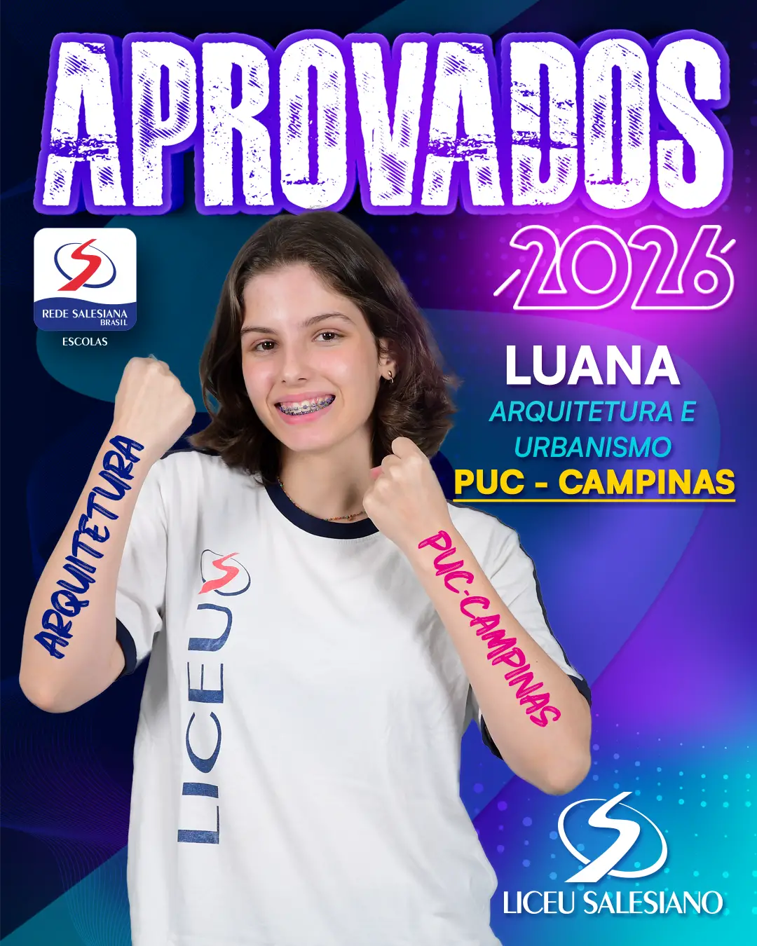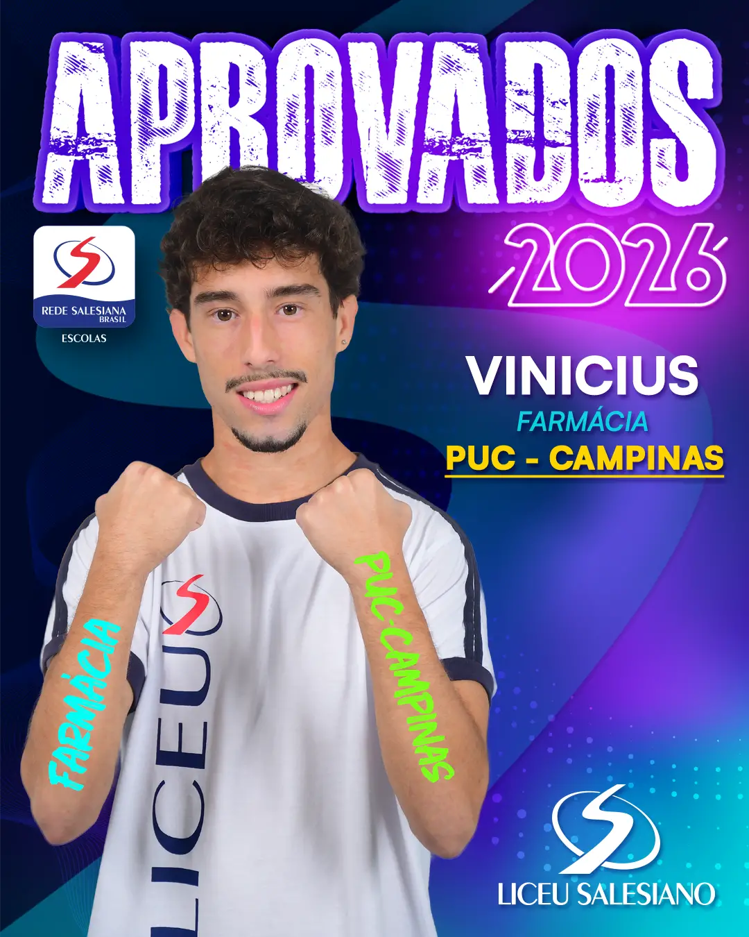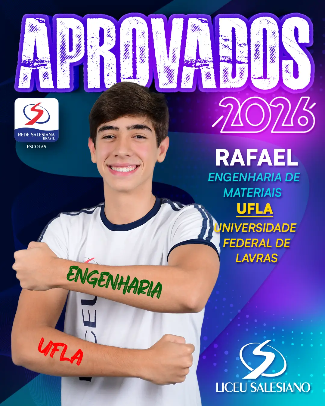 É com imenso orgulho que o COLÉGIO LICEU SALESIANO celebra a conquista de nossos estudantes do Ensino Médio, que brilharam nos vestibulares e garantiram seu lugar nas melhores universidades do Brasil e do mundo! Essa vitória é fruto de muito esforço, dedicação e do compromisso com a excelência acadêmica que sempre nos motiva.