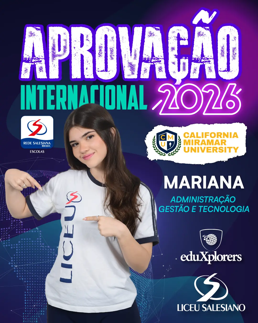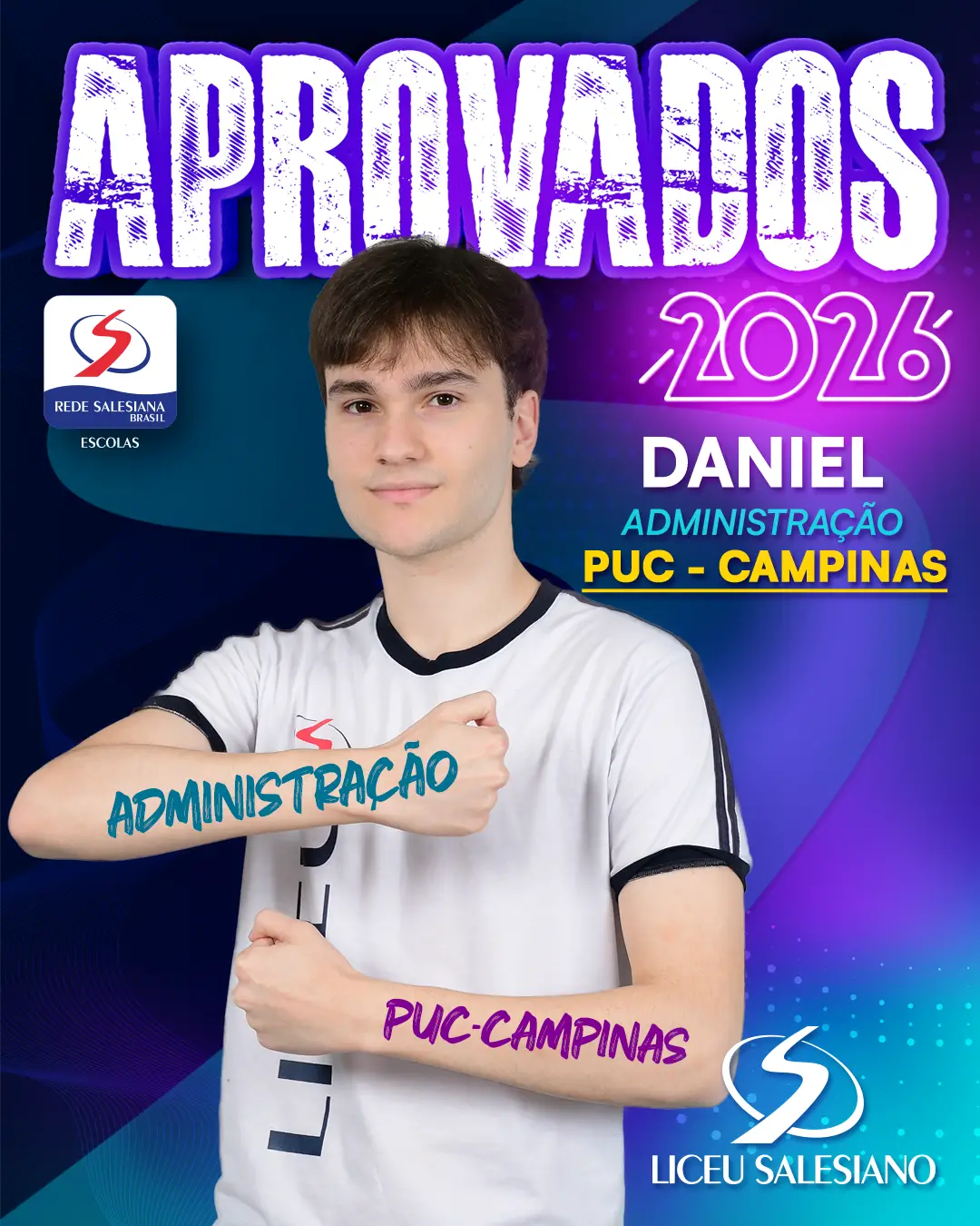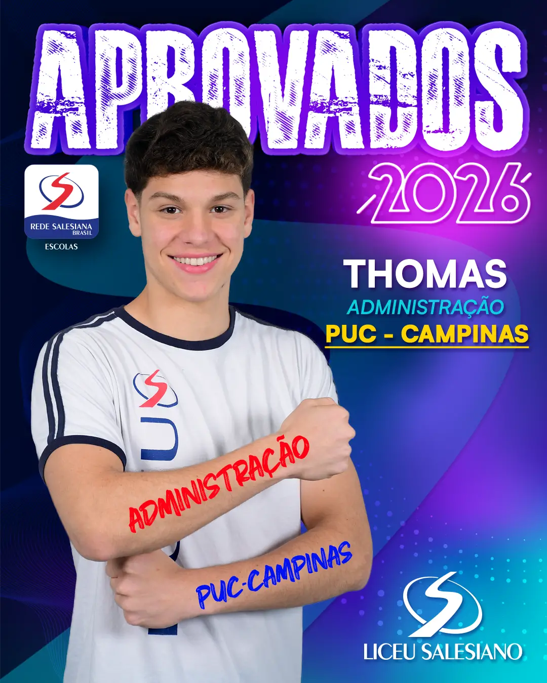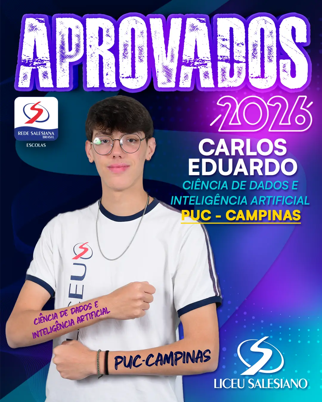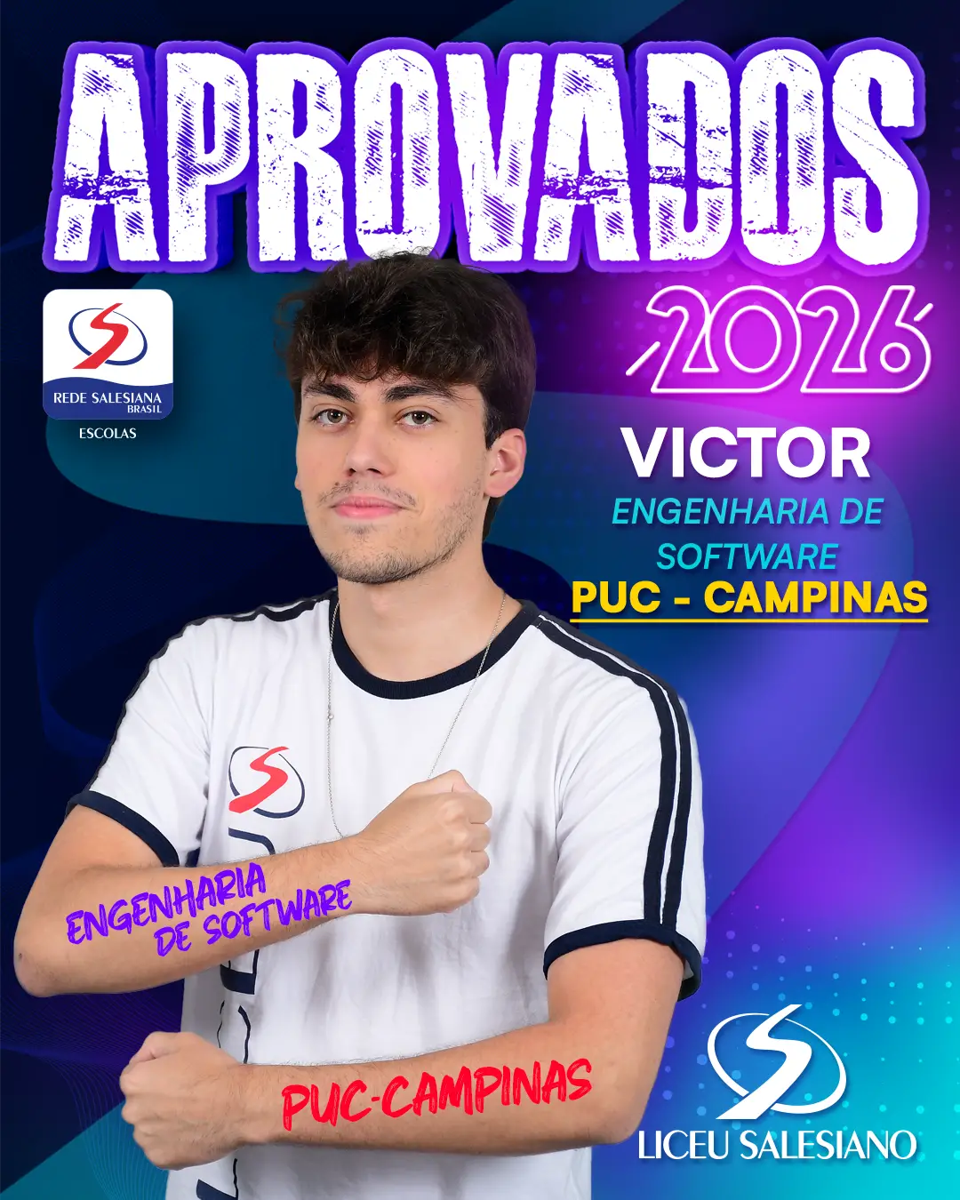 É com imenso orgulho que o COLÉGIO LICEU SALESIANO celebra a conquista de nossos estudantes do Ensino Médio, que brilharam nos vestibulares e garantiram seu lugar nas melhores universidades do Brasil e do mundo! Essa vitória é fruto de muito esforço, dedicação e do compromisso com a excelência acadêmica que sempre nos motiva.