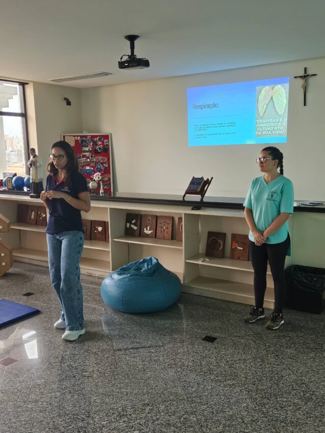 Tivemos a alegria de receber duas convidadas especiais, Lissandra e Débora, fisioterapeutas, que conduziram um momento de prática e aprendizado com os colaboradores.